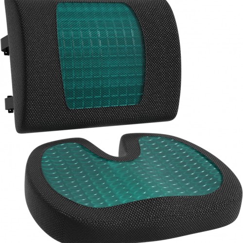 Lot de 2 Coussins d’assise et de soutien lombaire, Mousse à mémoire de forme et gel rafraichissant
