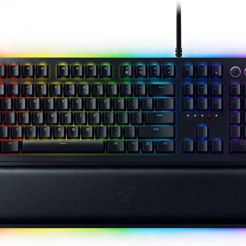 Razer Huntsman Elite Gaming Keyboard: Fast Keyboard Switches – Linear Optical Switches – Chroma RGB Lighting – Magnetic Plush Wrist Rest – Dedicated Media Keys & Dial – Classic Black