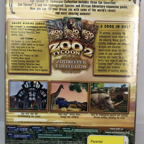 3127 Description Hi all, Up for sale is Zookeeper Collection Zoo Tycoon 2 Brand New for PC The game is brand new and still has the seal (please see pictures) I am also selling other items and I am happy to combine post, if you have any questions please ask. Thanks Payment Policy Please pay for the items within 3 days of the purchase via preferred methods of Paypal or bank deposit. Please be mindful, If you prefer to pay through bank deposit, depending on the bank, it might take 2-3 business days for the payment to clear. Return Policy We try our best to describe the item as accurate as possible. All items are checked prior to listing and mailing to the buyer. In case of any damage during the transport or any fault with the items, if not described in the listing, we are happy to negotiate the best outcome . Shipping Policy Basic shipping is offered on all items. If you require any further services such as express post of signature on delivery, please let us know and we can arrange it at an extra fee based on Australia post regular charges. Feedback Your positive feedbacks encourage us to improve our business services and give you a better shopping experience. We value your feedbacks. If you are not happy with the service provided to you, please contact us before leaving any negative or neutral feedback.
