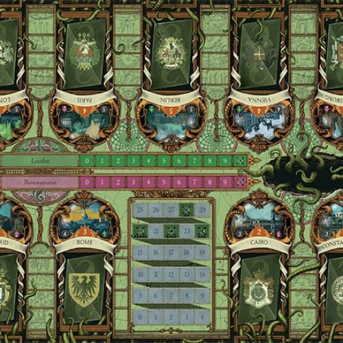 This second edition of A Study in Emerald sports new artwork by Ian O’Toole and Tatiana Kuzilova along with a streamlined set of rules that will hopefully help those folks who found the first version a tad complicated. Inconsistencies have been removed and the number of available actions has been reduced to the minimum; whilst still retaining the mood of paranoia from the first edition.
