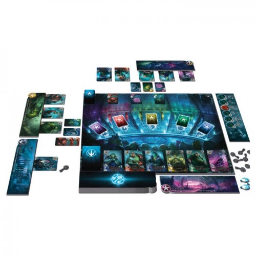Abyss is a game of development, combination and collection in which players try to take control of strategic locations in an underwater city. To achieve this, players must develop on three levels: first they must win allies in an auction. Second, they must recruit Lords by turning in their required sets of these allies. And third, they must use these Lords to gain control of locations, sacrificing their Lords’ powers in the process.