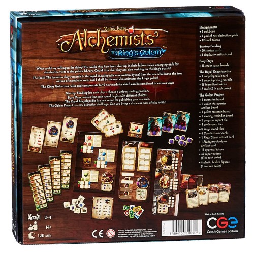 Alchemists: The King’s Golem, an expansion to Alchemists, brings you a new logic puzzle with new rewards and consequences. Can you figure out how to animate a golem? And equally important, can you convince the king you are making progress?