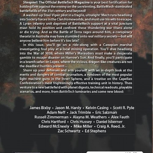 Shrapnel: The Official BattleTech Magazine is your best fortification for holding firm against the enemy on the unrelenting, BattleMech-dominated battlefields of the 31st century and beyond!