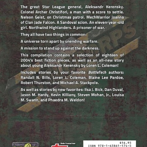 The great Star League general, Aleksandr Kerensky. Colonel Archer Christifori, a man with a score to settle. Nelson Geist, on Christmas patrol. MechWarrior Joanna of Clan Jade Falcon. A Sandoval scion. An eleven-year-old girl. Northwind Highlanders. A prisoner of war.