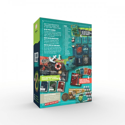 In Deep Regrets, you’ll spend a week moving between sea and port, trying to pull in the most desirable creel of fish and fish-adjacent creatures. You’ll need to manage your energy, resources and regrets and push your luck to pull in the best haul possible. At the end of the game, you’ll score the fish you have in hand, the fish you’ve mounted, and any Fishbucks you have remaining… and the player with the most regrets will lose their most valuable fish.