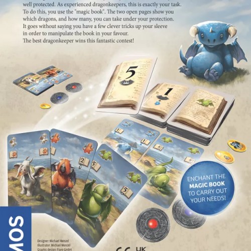Even dragons start small. Before they can fly and breathe fire, they need to be well protected. As experienced dragonkeepers, this is exactly your task. To do this, you use the “magic book”. The two open pages show you which dragons, and how many, you can take under your protection. It goes without saying you have a few clever tricks up your sleeve in order to manipulate the book in your favor.