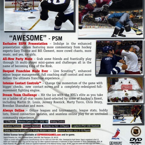 Lace up your skates and hit the ice in ESPN NHL 2K5 for the Playstation 2. This critically-acclaimed hockey simulation delivers fast-paced, authentic on-ice action with incredibly deep gameplay mechanics, including precise passing, hard-hitting checks, and realistic puck physics. Take control of your favorite NHL team, battle through a grueling season, and hoist the Stanley Cup. With its immersive presentation and extensive franchise mode, experience the thrill of professional hockey.