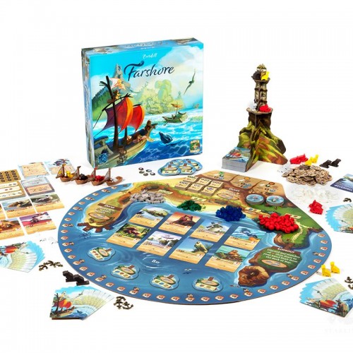 Welcome to Everdell Farshore; a standalone game set in the country of Farshore. Through each season; you lead a crew of critter workers to build up a prosperous city and to explore the enchanting ocean beyond. You must plan your actions carefully in order to build and to sail; for only by adapting to the winds of change will you succeed.