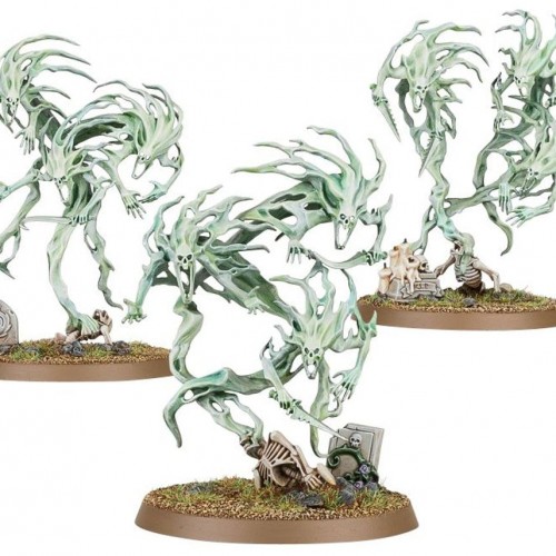 Moonclan Stabbas form ragged ranks that advance upon the foe with gongs clanging and banners waving. Eyes bulging with the madness of the Gloomspite, they pour over the enemy lines and stab wildly at everything in their path.