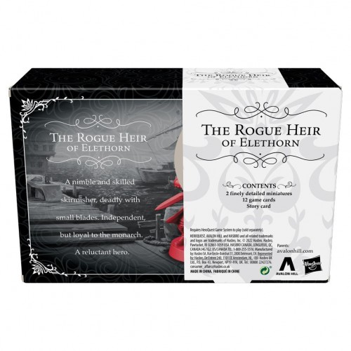 Prepare for battle! Independent, but loyal to the monarch, The Rogue Heir of Elethorn is a nimble skirmisher deadly with small blades. When you play as this hero, you lack the ability to use metal armor and shields, but you’re equipped with your trusty bandolier, and are always ready to meet danger head on. This collector’s edition item includes 2 highly-detailed Rogue Heir of Elethorn figures with powers and skills not seen in HeroQuest characters. It also includes 12 game cards, and a story card featuring an important letter from a secret group, addressed to the Rogue Heir. Requires HeroQuest Game System to Play.