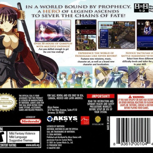 Forge your destiny in a world torn by war with Hoshigami: Ruining Blue Earth Remix for the Nintendo DS. This challenging tactical role-playing game is a deep and strategic experience for dedicated SRPG fans. Command your mercenaries on a grid-based battlefield, where every decision matters. The game features a unique RAP system that governs actions, a deep character customization system through deities, and sessions for crafting items. With its complex mechanics and engrossing story of conflict and sacrifice, this handheld title offers hours of strategic gameplay for those who love a true tactical challenge.