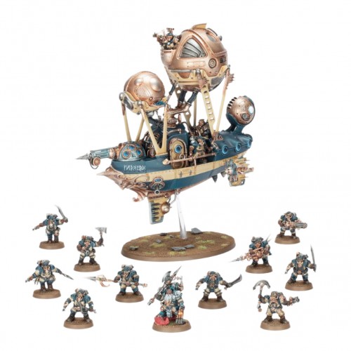 This multipart plastic kit builds one Null-Khemist, a powerful flying warrior for your Kharadron Overlords armies in games of Warhammer Age of Sigmar. They make ideal assassins, targeting enemy priests and wizards with their null-gas extinguishers and prospecting clamps. They’re fast, difficult to kill, and excellent for leading an aggressive charge along with other airborne elements of your force.
