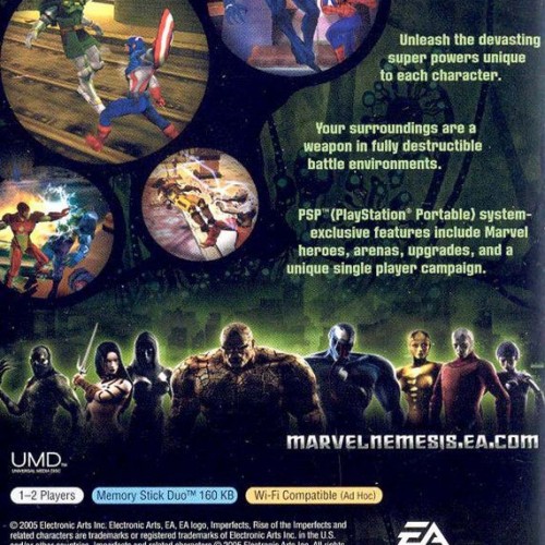 Heroes and villains collide in Marvel Nemesis: Rise of the Imperfects for the PSP. When a mysterious alien race invades, iconic Marvel heroes like Spider-Man, Wolverine, and Iron Man must battle a new group of formidable warriors known as the Imperfects. Engage in destructive 3D arena combat on the go, master unique character abilities, and unravel the story behind this alien threat in this portable brawler.