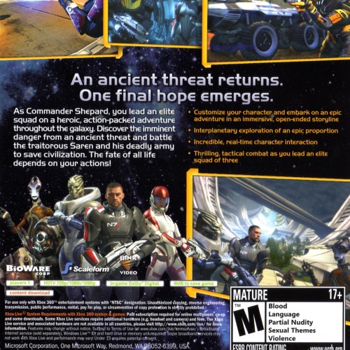 Embark on an unforgettable sci-fi epic in Mass Effect for the Xbox 360. As Commander Shepard, you are humanity’s last hope against an ancient alien threat. Assemble a diverse squad of unique characters, explore a vast galaxy filled with intriguing planets, and make choices that shape the fate of civilizations. This critically acclaimed action RPG features deep storytelling, intense third-person combat, and a richly detailed universe.