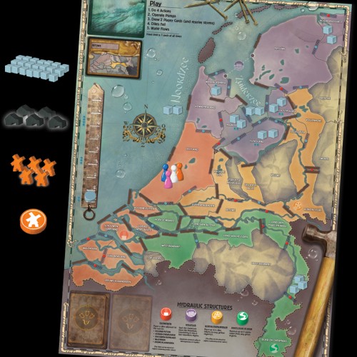 In Pandemic: Rising Tide; you and your friends play as a team of Dutch civil officials helping to modernize the water containment system. Your ultimate goal is to construct four hydraulic structures that will ensure the safety of the Dutch people for generations to come. To accomplish this task; however; you must first buy yourself enough time by building dikes to control water flow; ports to facilitate travel; and windmills to pump the water out of flooded lands. But proceed with caution. A single misstep could send water spilling across the countryside. Choose your actions carefully; work as a team; and usher in the Industrial Age!
