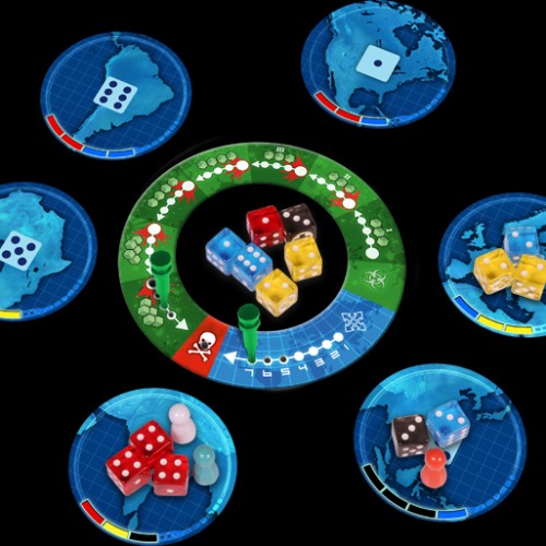 Pandemic: The Cure is a stand alone, dice-based version of classic cooperative Pandemic board game. Just like the original, you win or lose together as your team travels the globe treating diseases and keeping hot spots in check while researching cures. In this version, though, rolling dice determines everything from the outcome of your actions to the behavior of diseases. Each character has both a unique ability and a set of dice you roll at the start of each turn. Depending on the results, you can fly or sail between population centers, treat diseases in your region, collect samples for further study, or exchange information with other players. Try for the perfect turn by rerolling your unused dice, but each biohazard symbol that comes up brings you one step closer to the next epidemic.