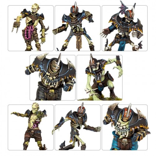 The Champions of Death team set contains 14 multipart plastic players covered in rusted armour, and eight thematic gaming accessories: