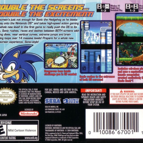 Experience blistering speed and dual-screen action in Sonic Rush for the Nintendo DS. Join Sonic the Hedgehog and the new pyrokinetic princess, Blaze the Cat, as they battle Dr. Eggman and his dimensional counterpart, Dr. Eggman Nega. Utilize the “Tension Gauge” to unleash incredible speed boosts and devastating special moves. Race through vibrant 2D levels that span both DS screens, perform acrobatic tricks, and battle challenging bosses. With its fast-paced gameplay, stylish visuals, and catchy soundtrack, Sonic Rush delivers an exhilarating and critically acclaimed portable Sonic adventure.