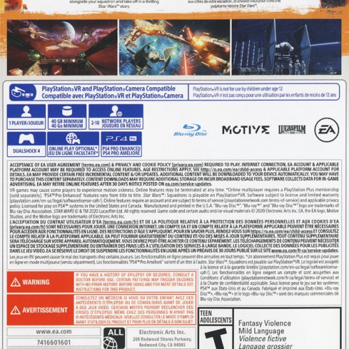 Master the art of starfighter combat in Star Wars: Squadrons for the Playstation 4. This immersive first-person space combat game puts you in the cockpit of iconic Rebel Alliance and Galactic Empire starfighters. Experience a thrilling single-player story set after Return of the Jedi, then dive into intense 5v5 online multiplayer dogfights and objective-based fleet battles. Customize your starfighter’s loadout, manage power systems, and work with your squadron to achieve victory. Star Wars: Squadrons delivers an authentic and exhilarating starfighter pilot experience with optional VR support.