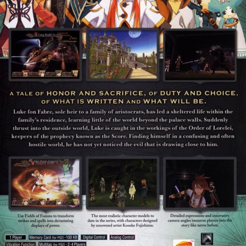 Explore a world on the brink of collapse in the critically-acclaimed Tales of the Abyss for the Playstation 2. This epic Japanese RPG tells the profound story of Luke fon Fabre, a young noble sheltered from the world, who is thrust into a massive conflict. The game features the series’ signature real-time “Flex Range Linear Motion Battle System,” allowing for fast-paced, action-oriented combat with full 3D movement. With a memorable cast, a complex and moving narrative, and deep gameplay systems, this is one of the finest JRPGs on the console.