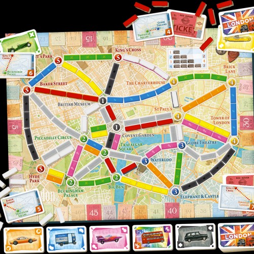In this fast-paced Ticket to Ride game; players race one another to claim the most important bus lines and complete their Destination Tickets; connecting Districts in the capital of the United Kingdom. The elegantly simple gameplay of this stand-alone version of Ticket to Ride is ideal for both beginners and seasoned players.
