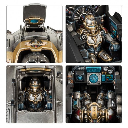 – An Imperial Knight Warden frame, including a thunderstrike gauntlet, avenger gatling cannon, carapace mounted twin icarus autocannon, carapace mounted missile launcher with the choice of either ironstorm, shieldbreaker, or stormspear missile pods, meltagun, 3 alternate faceplates, and tilting plate.