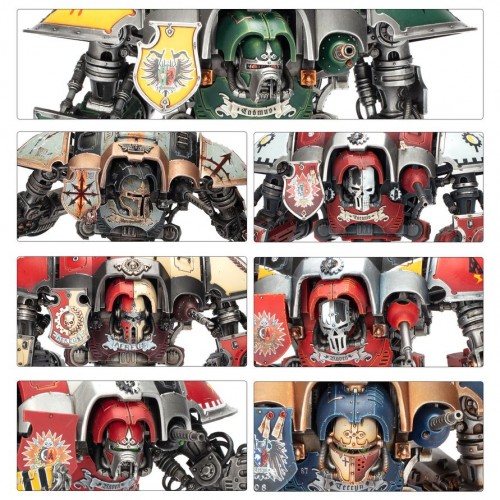 All based around the same towering chassis, each configuration brings an arsenal of weapons loaded with terrible power. Just one of these mighty war machines can change the outcome of an entire battle. With different noble faceplates, tilting shields, and other accessories, you’ll be able to create a truly unique engine of war.